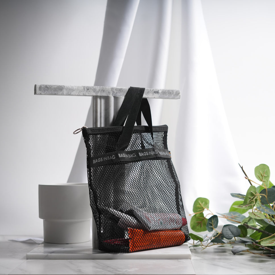The sufficient size enables you to store bath goods or swimsuits at once.